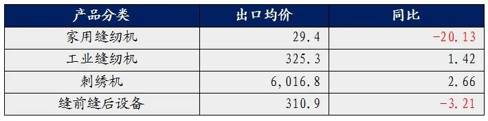 从出口价格来看,2024年一季度我国各类缝制机械产品中工业缝纫机和刺绣机产品出口价格同比呈现小幅增长态势。其中,工业缝纫机出口价格均价325.3美元/台,同比增长1.42%;刺绣机出口价格均价6016.8美元/台,同比增长2.66%。表1 2024年一季度我国缝制机械大类产品出口均价情况