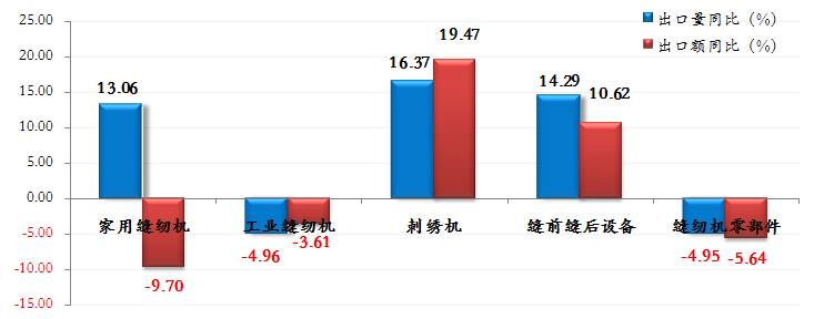 一季度国家系列稳增长政策持续显效发力,下游行业发展预期持续改善,纺织服装、鞋帽等行业投资明显增长,服装消费等需求不断释放,带动缝制设备内销市场实现平稳增长。据国家统计局统计显示,一季度我国规模以上服装生产企业完成服装产量同比增长1.89%,比2023年全年提升10.58个百分点;纺织服装、服饰业固定资产投资额累计增长17.5%,皮革、毛皮、羽毛及其制品和制鞋业固定资产投资额累计增长4.9%;限额以上单位服装商品零售额同比增长2.2%,其中服装类商品零售类值同比增长2.2%。据初步统计测算,一季度我国缝制设备内销同比增长约20%,百家整机生产企业内销产值同比增长31.83%。