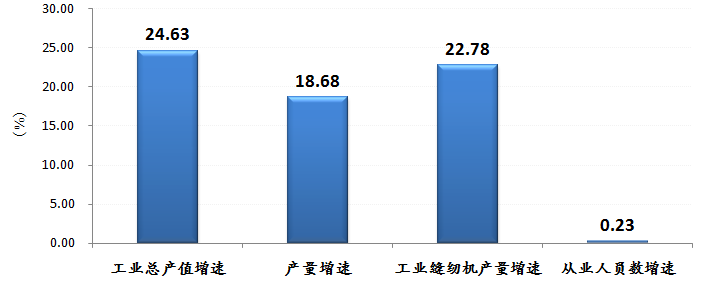 另据协会统计的百家整机生产企业数据显示,一季度行业百家企业工业总产值51亿元,同比增长24.63%;缝制设备总产量161万台,同比增长18.68%,其中工业缝纫机产量115万台,同比增长22.78%,各大类产品季度产量同比均呈现不同程度增长态势。3月末百家企业从业人员数同比增长0.23%。图3 2024年1-3月行业百家整机生产企业主要生产指标增速情况